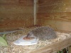 Aber am zweiten Tag fing er dann an zu fressen (wie man sieht); außer Katzenfutter gab es noch ein paar Mehlwürmer. Und jetzt kann er sich auch wieder einigeln ;)